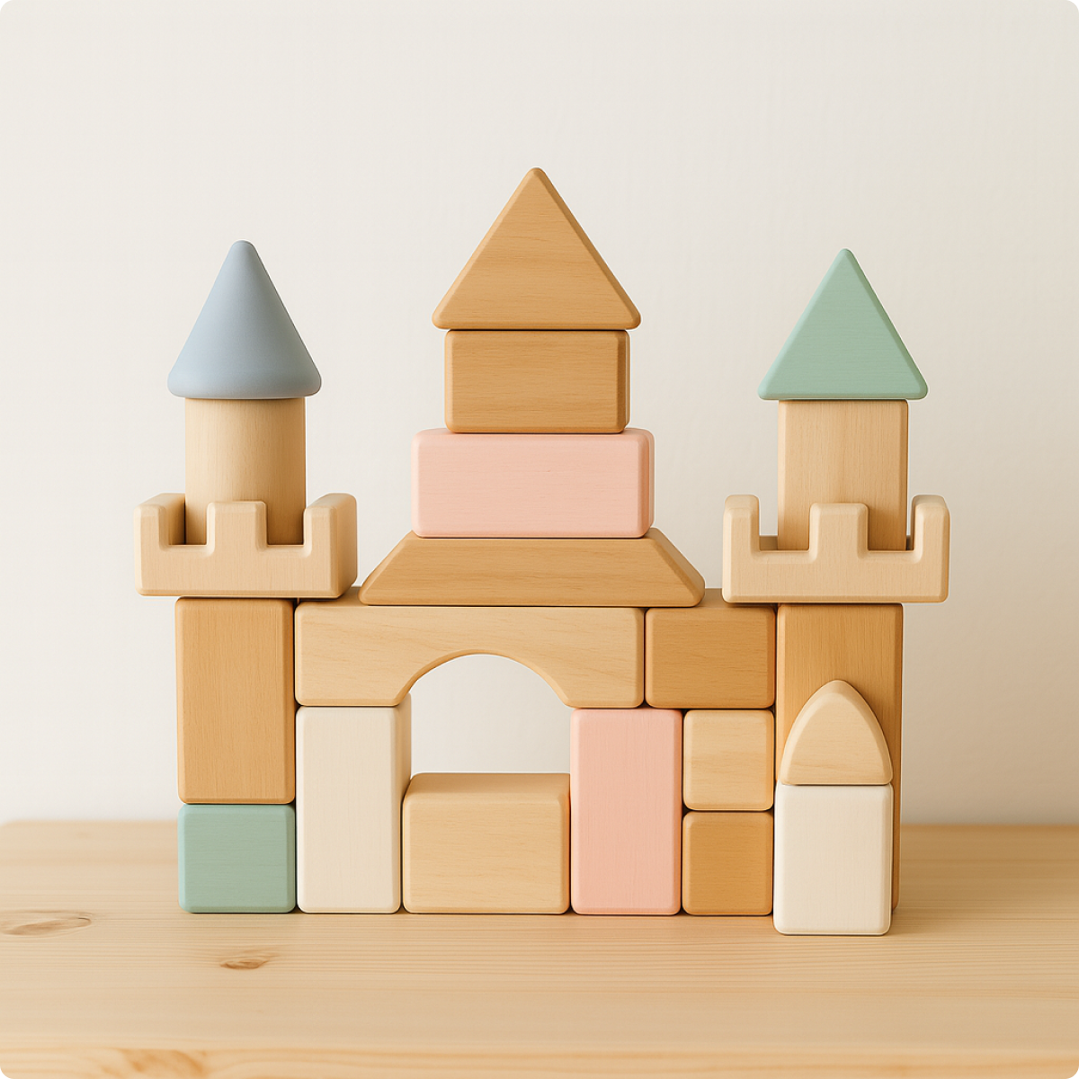 A magnificent 35-piece wooden castle block set featuring towers, walls, arches, and battlements. Ideal for building epic medieval fortresses and encouraging historical role-play.