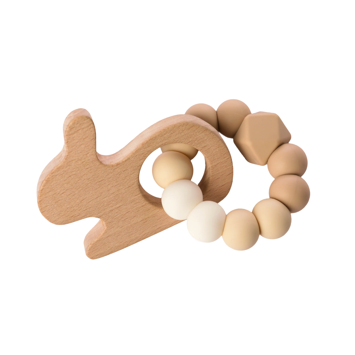 The Wooden Rabbit Rattle is a delightful, eco-friendly addition to your baby's toy collection. Designed with sweet, elongated ears that are easy for tiny hands to grab and chew on, this rattle supports emerging motor skills and offers natural relief during teething. It is meticulously crafted from sustainably harvested, untreated hardwood, ensuring no harmful chemicals or sharp edges. When gently shaken, the rattle produces a soft, melodic sound that helps develop auditory perception. Lightweight, durable, and naturally antibacterial, the rabbit rattle is a cherished, safe, and beautifully simple classic.