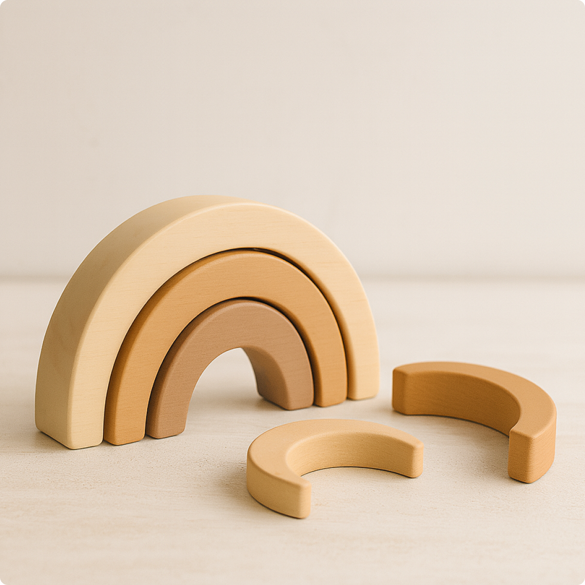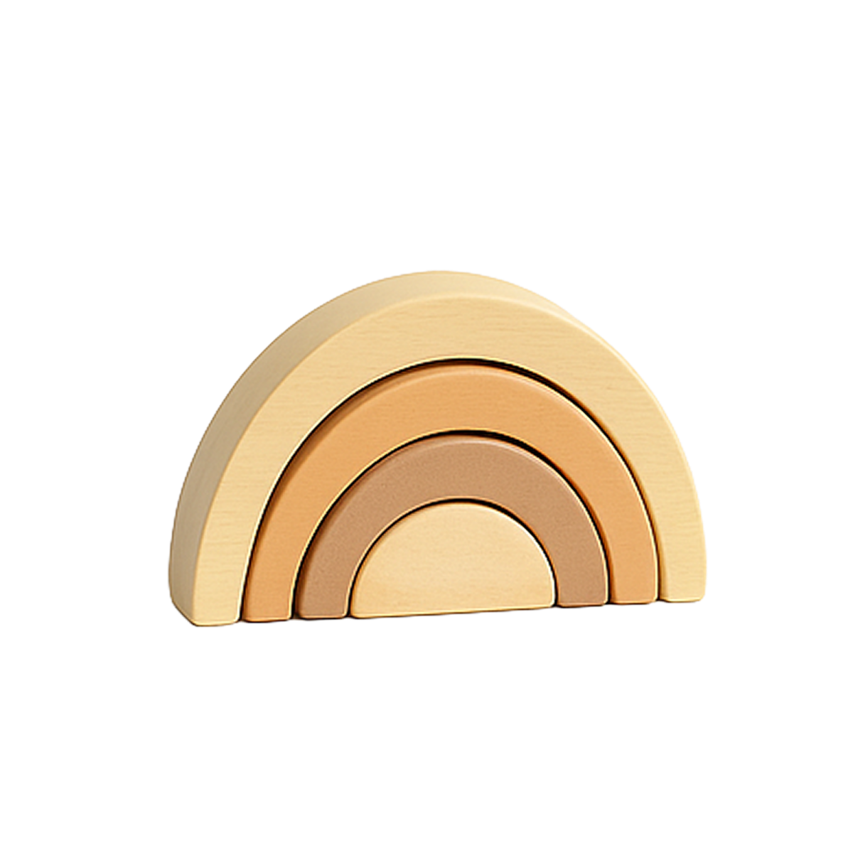Inspire endless creativity with this gorgeous, large Natural Wooden Rainbow Puzzle. Unlike painted versions, this set showcases the beautiful grain of the natural wood, offering a wonderful tactile experience for small children. It consists of multiple nested arches that can be stacked, balanced, used as tunnels for cars, small doll cradles, or imaginative structures. This open-ended toy is essential for developing fine motor skills, spatial awareness, and creative thinking. Made from sustainably harvested, child-safe wood, it's a durable, heirloom-quality piece that will grow with your child for years to come.
