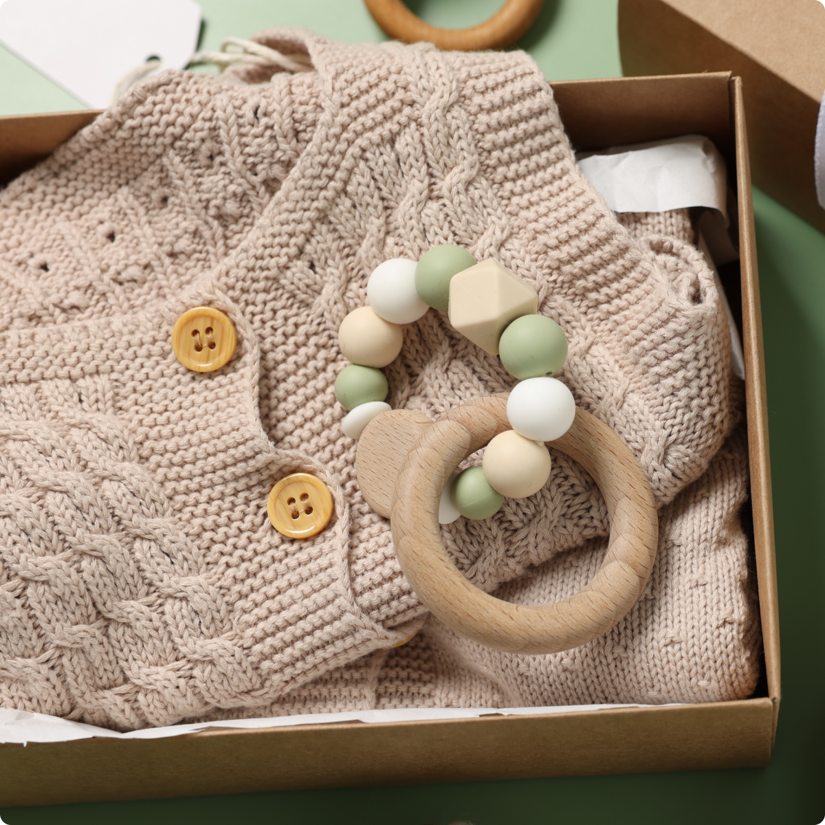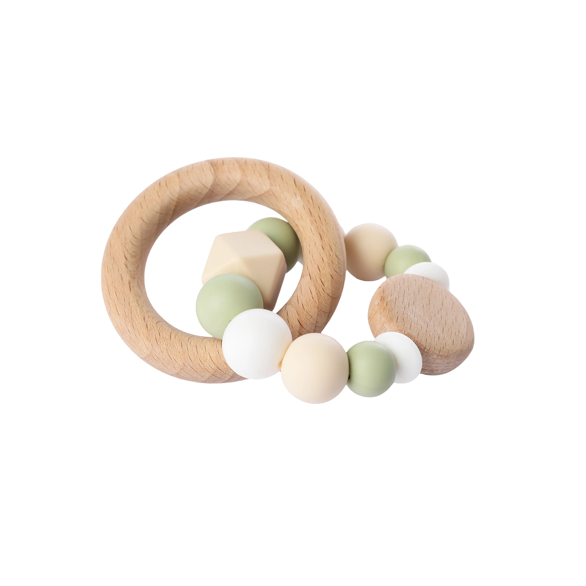 The perfect 2-in-1 sensory toy: a durable wooden teether combined with a gentle rattle, designed to soothe sore gums while engaging baby's senses.
