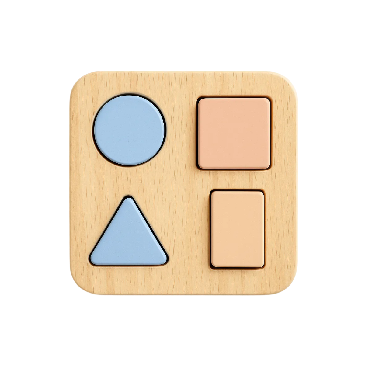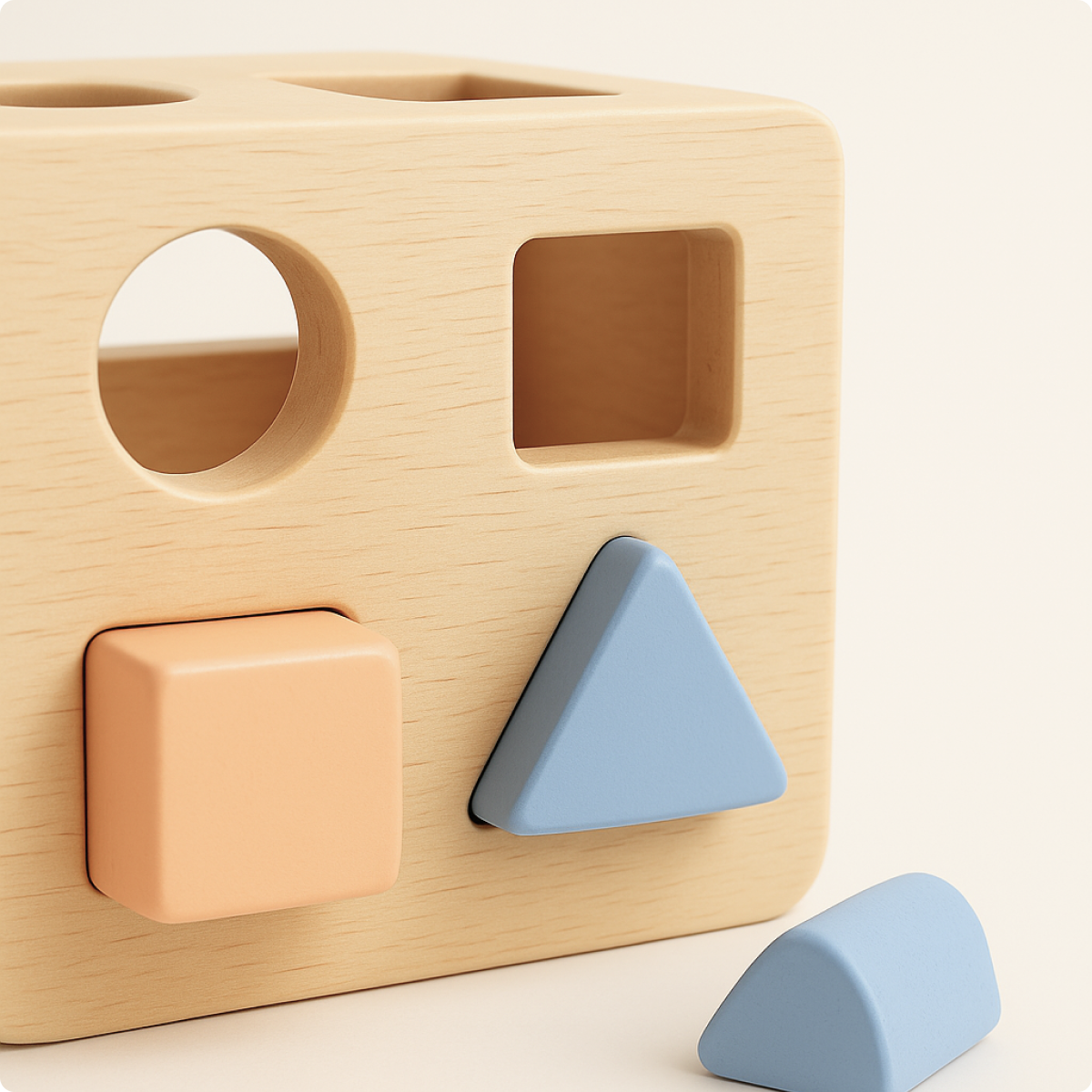 A classic, unpainted wooden shape sorter. Features smooth geometric shapes and a durable box, perfect for developing problem-solving and fine motor skills.